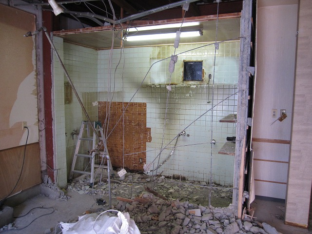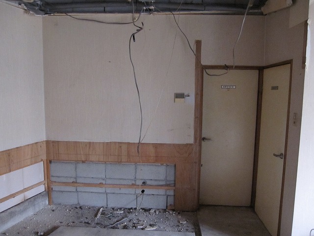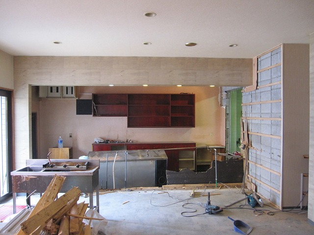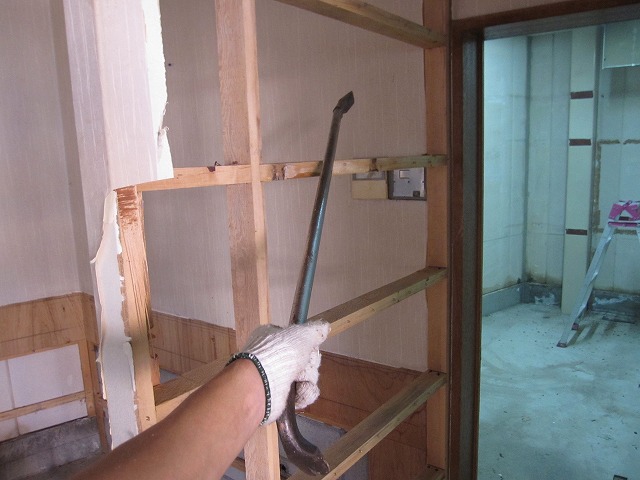 鉄骨を隠す様に張られた板、トイレ前に作られた造作の壁も解体☆