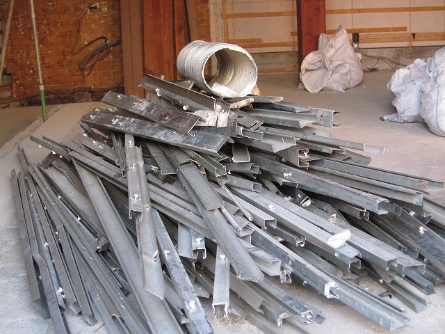 天井を吊っていた軽量鉄骨材がむき出しに。