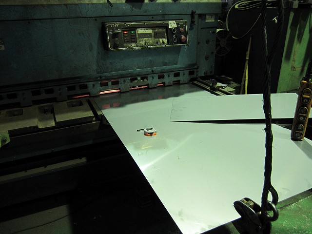 その後作業を鉄工所に移して、ステンレスの薄板をサイズに合わせてカット☆