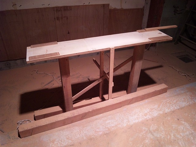 そのへんに転がっている廃材を加工して、パパッと専用作業台を作成☆