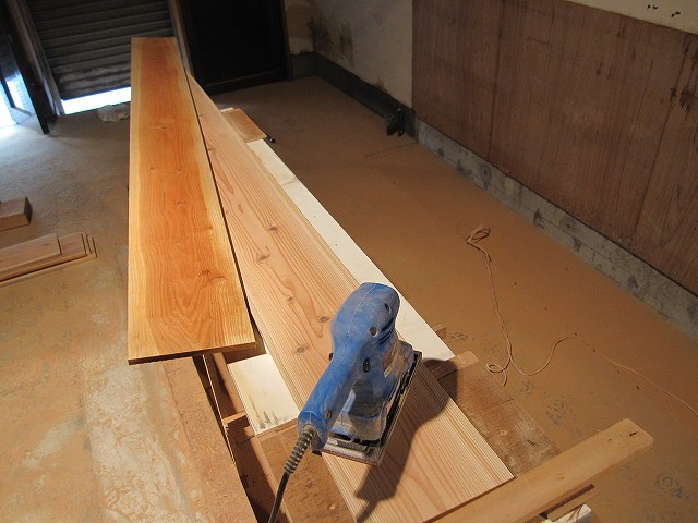 荒れている表面の板をまずは「80番」のヤスリで研磨☆