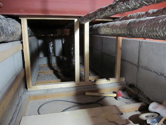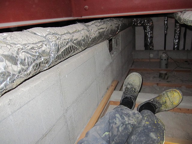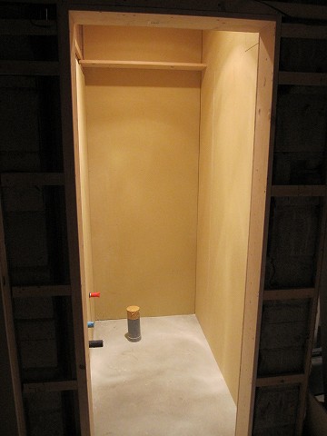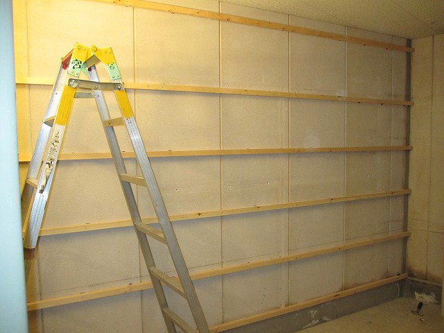 これが終われば天井の塗装・壁の加工・床材の施工・ドアの取り付けと進めてやっと実用レベルの「部屋」が完成します。