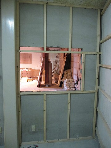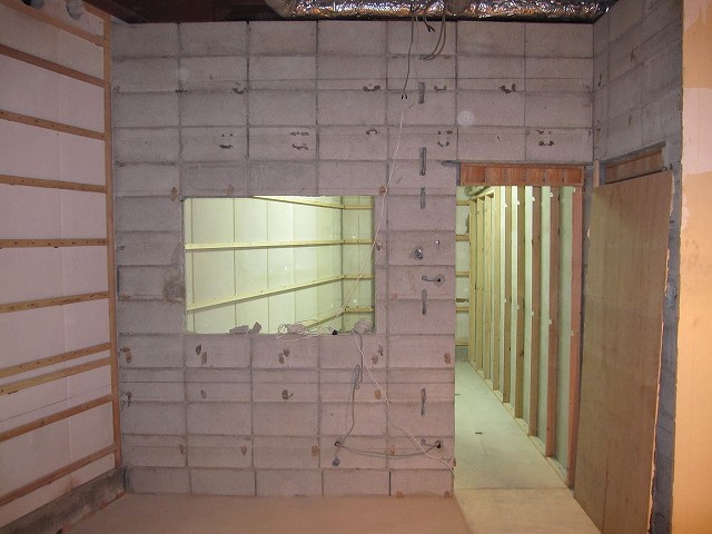 作業の初回にコンクリートブロックを抜いた壁です。