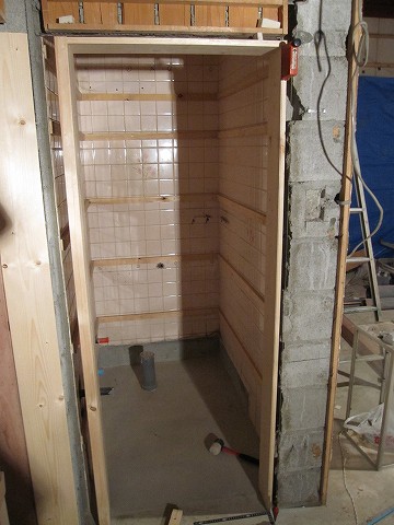 ここにはこれから吊り戸棚などの取り付け・天井の塗り直し・壁の施工・床張り・換気扇の取り付け・電気配線などを行っていきますφ(。_。;)やる事多い…