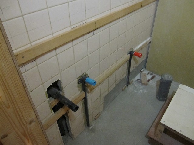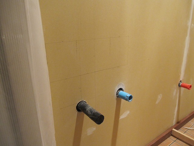 壁の加工をする前に手洗い器の取り付けをしておかないといけません。