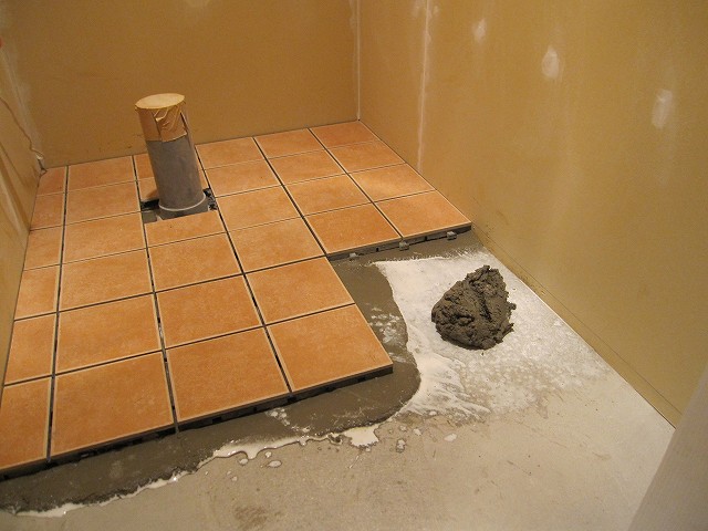 配水管と部屋の大きさに合わせてタイルをカットして敷き詰めました☆