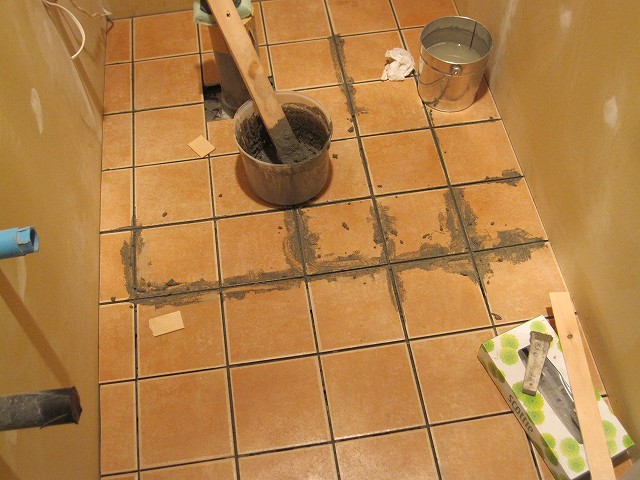 一晩放置して硬化を待ったあと、今度は目地をせっせと埋めました☆