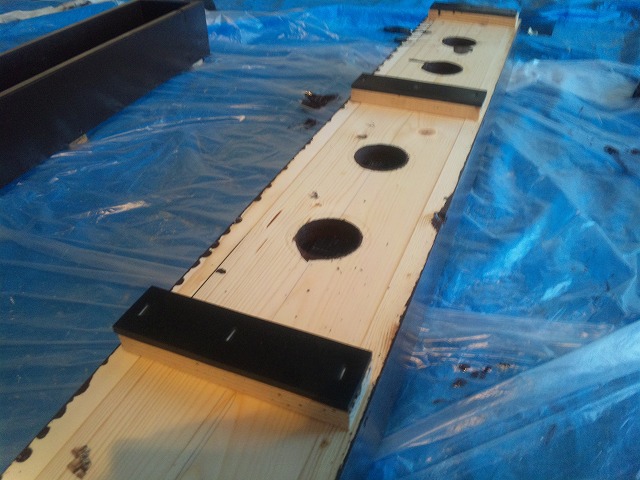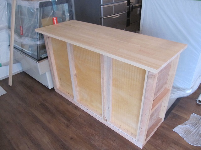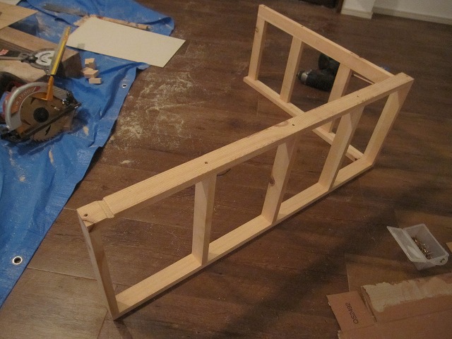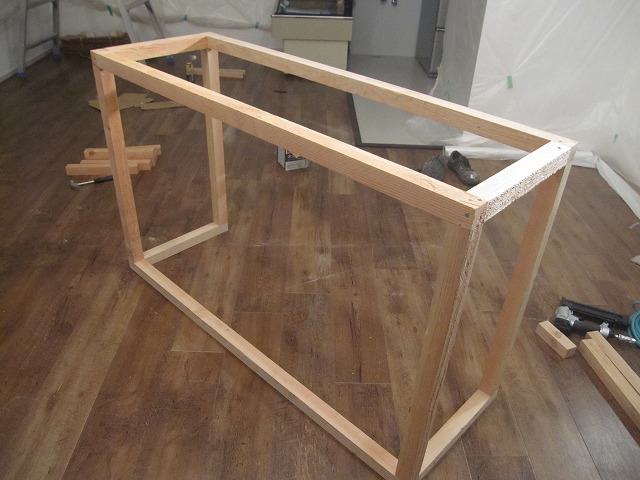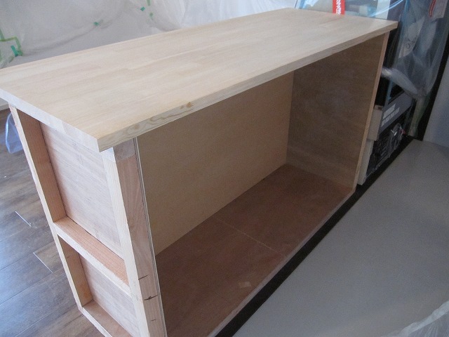 この上に天板を乗せて、裏からビスで固定すると…