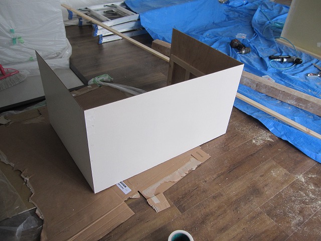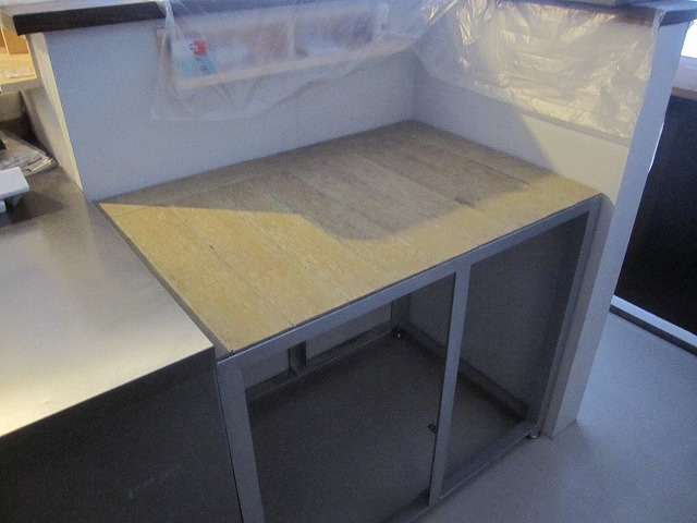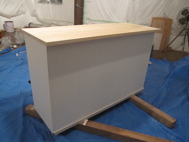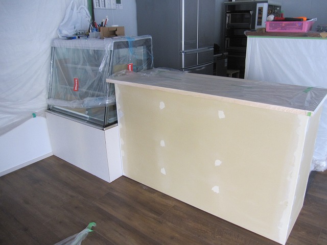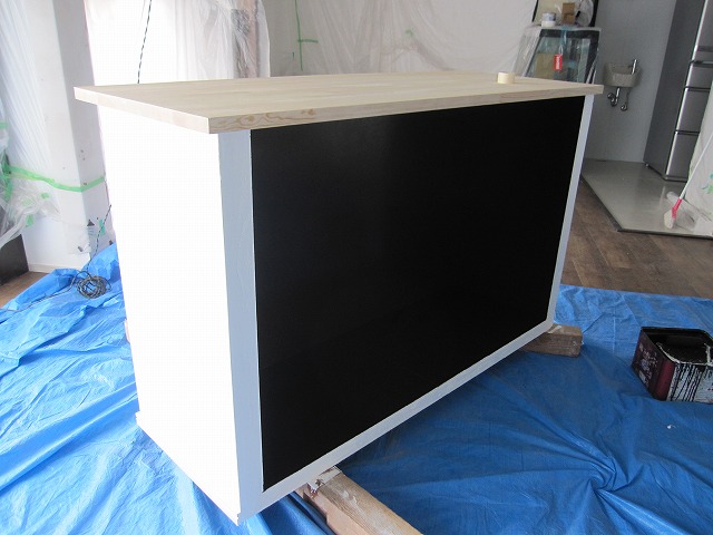 レジカウンター表面の塗装が乾いたので、今日は内面を塗装しました☆