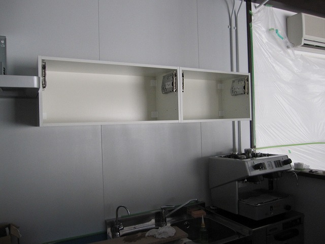 続けてキッチンシンクの上部に食器棚を取り付けました('-'*)