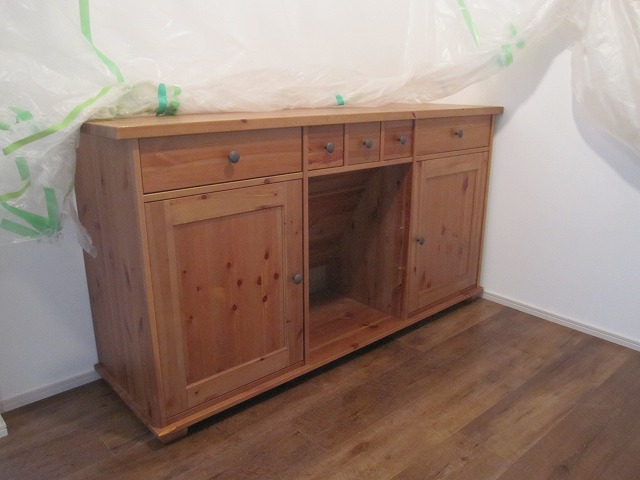 その前に必死で取り付けたばかりの食器棚を一旦取り外しΣ(゚口゚;