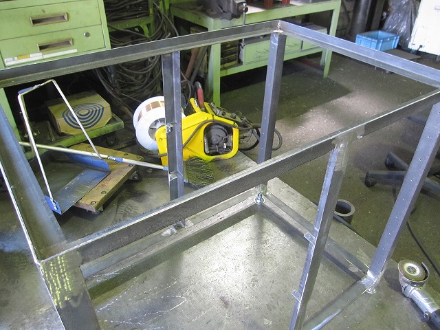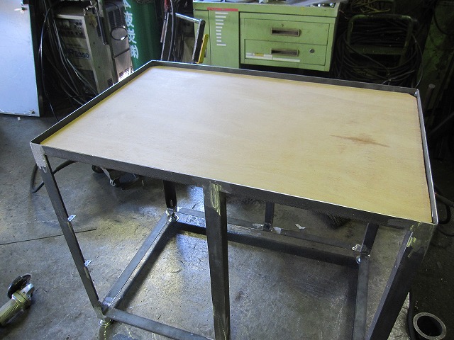 先日鉄工所で作成したラック付き作業台☆